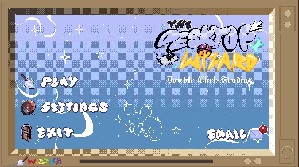 The Desktop Wizard is a block-pushing puzzle game that helps people address their desktop-related problems. Platform around levels and use our little wizard mouse protagonist, Vesper’s magic mop, to push desktop icons into each other to create organized files.